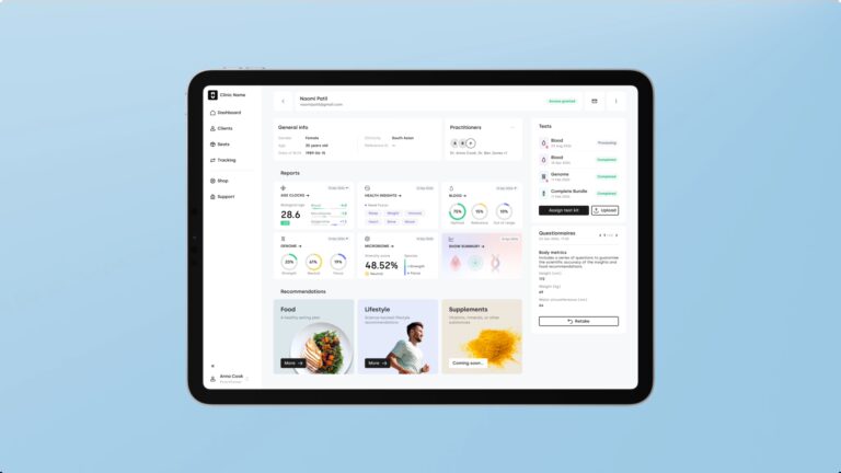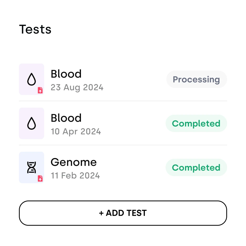 Reports of all tests, holistic Health Insights and comprehensive Age Clocks, available in web, PDF, and CSV formats.